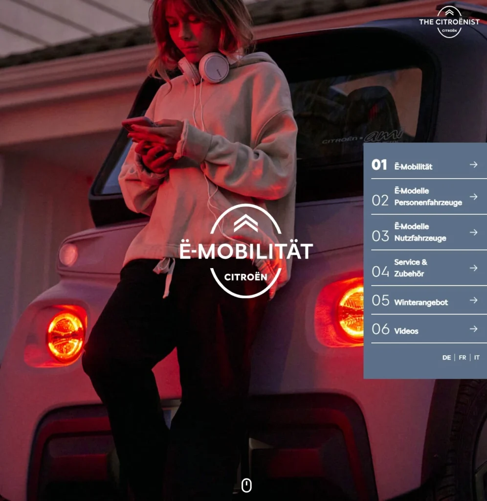 Ein digitales Magazin für Citroën gestalten und coden, das mit Mythen rund um die Elektromobilität aufräumt, die E-Modelle von Citroën richtig gut in Szene setzt und dabei auch noch Spaß macht.